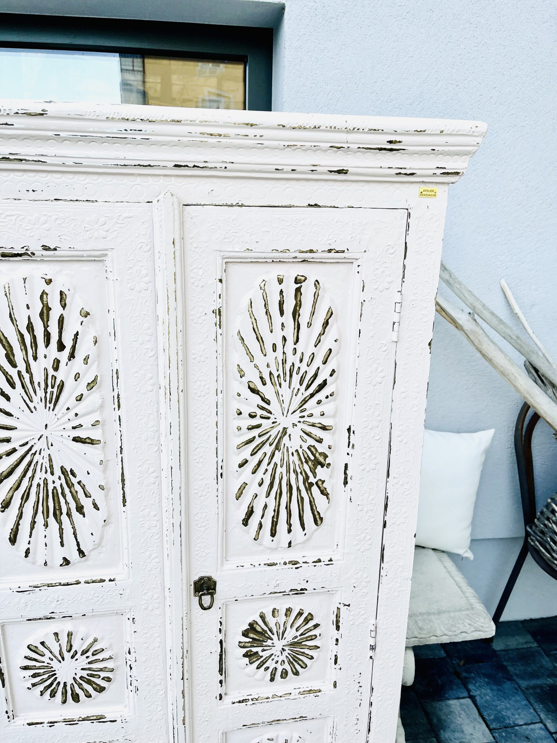 Besonderer Schrank mit Messingpatina