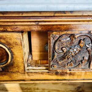 Das Geheimfach ist wirklich nicht zu sehen – man schiebt einen Teil in der Mitte zur Seite und dahinter befindet sich die versteckte Lade.