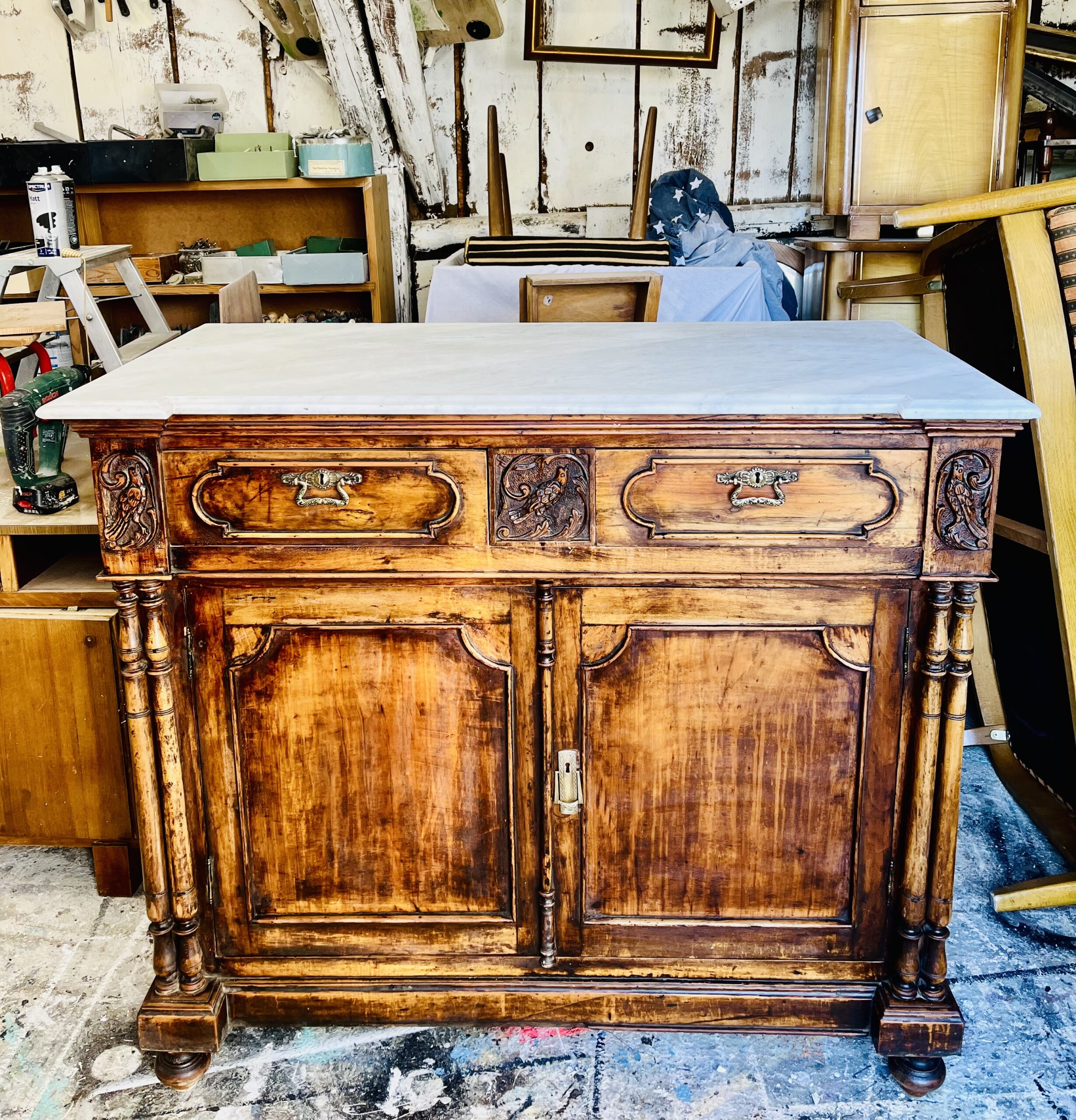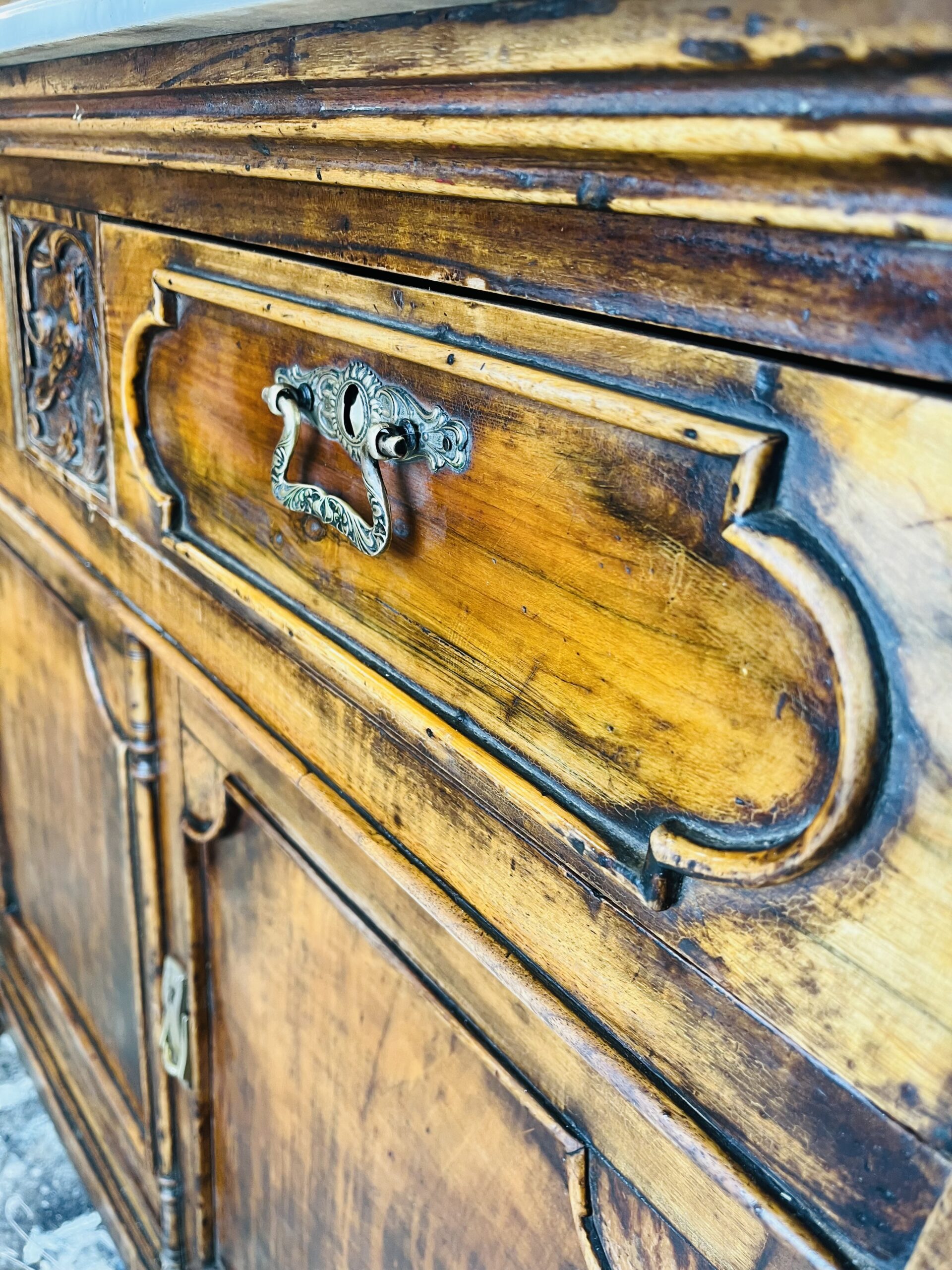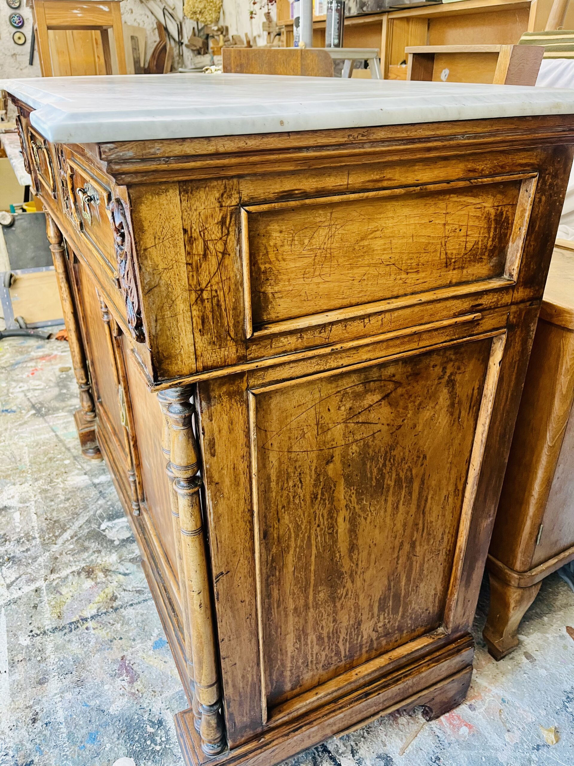 die Marmorplatte hat leichte Kratzer -fällt aber nicht besonders auf .