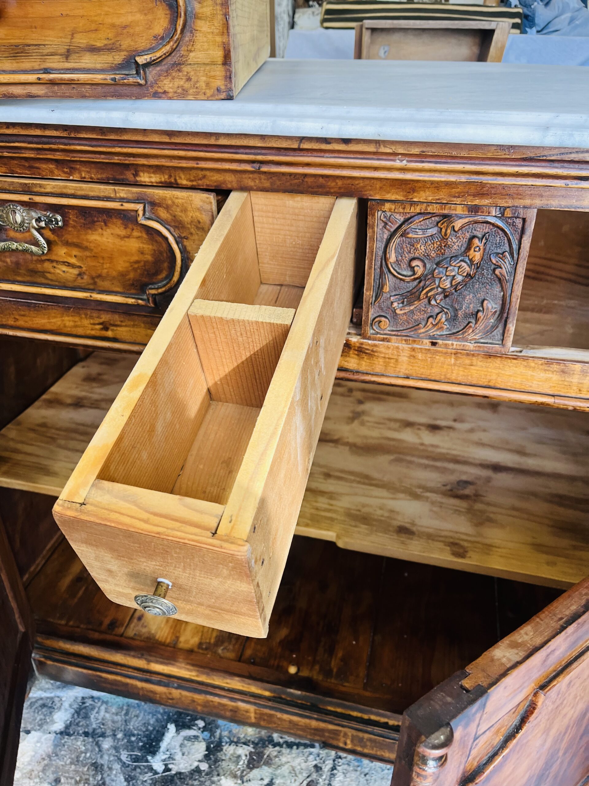 Das Geheimfach ist wirklich nicht zu sehen – man schiebt einen Teil in der Mitte zur Seite und dahinter befindet sich die versteckte Lade.