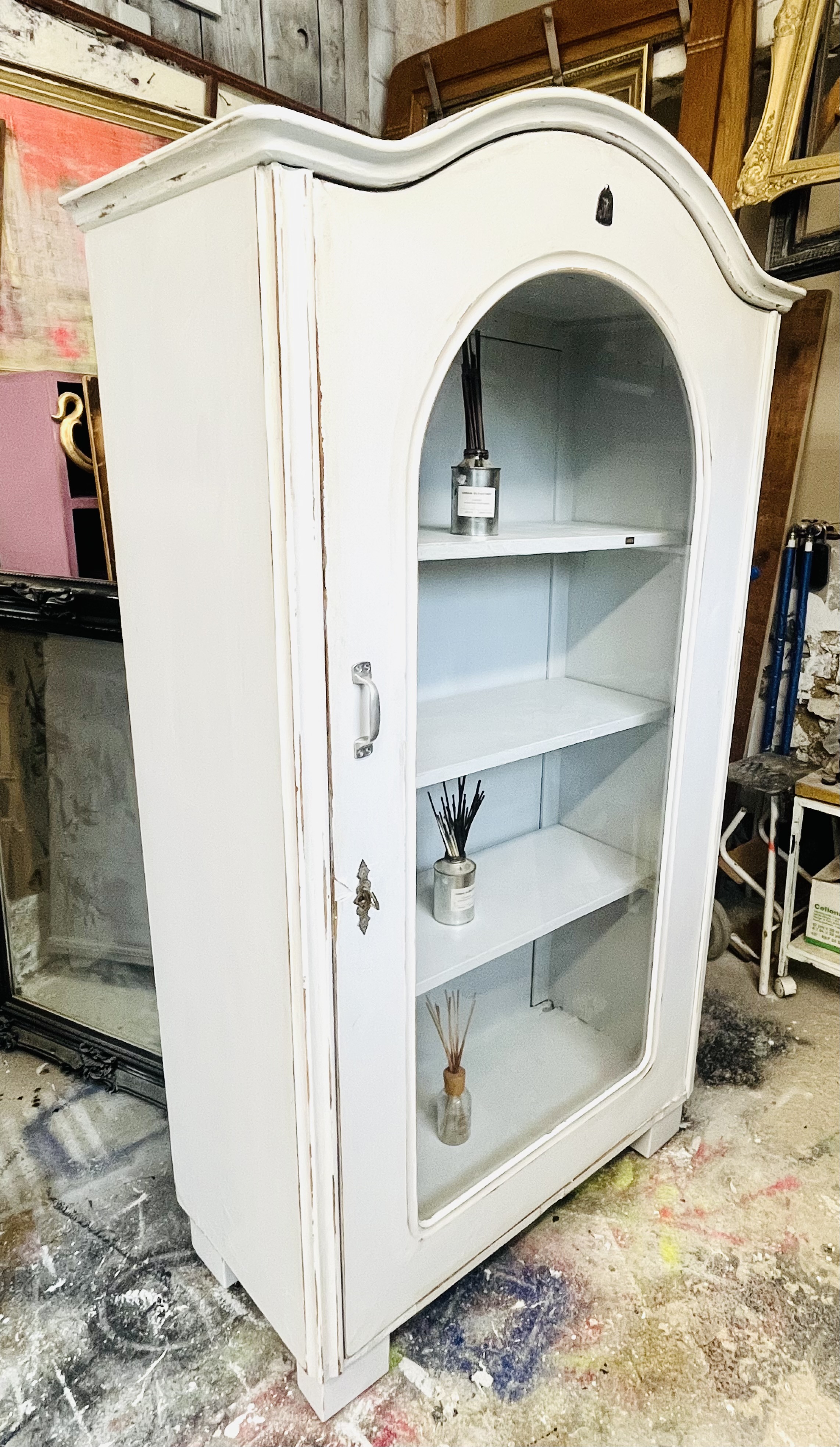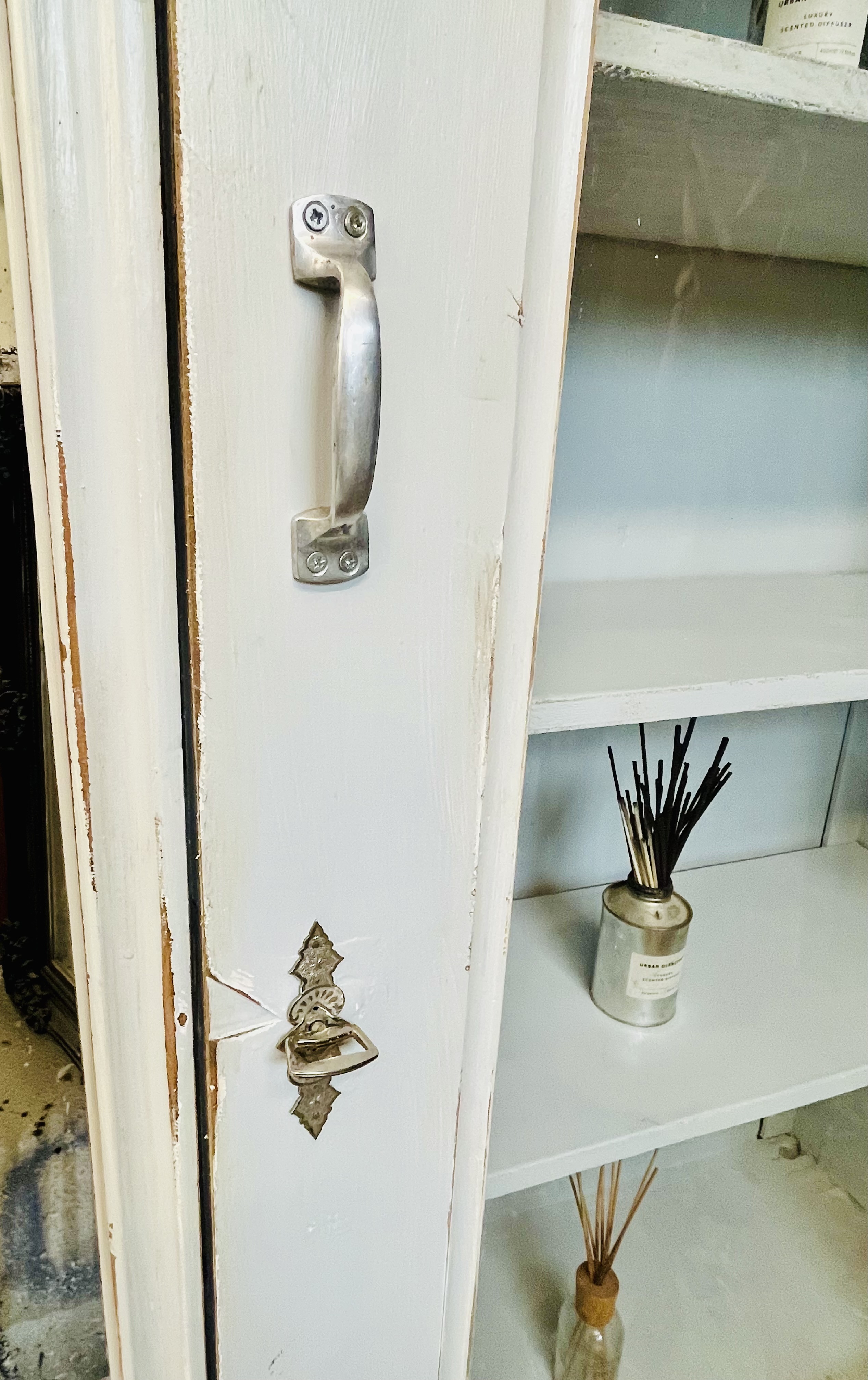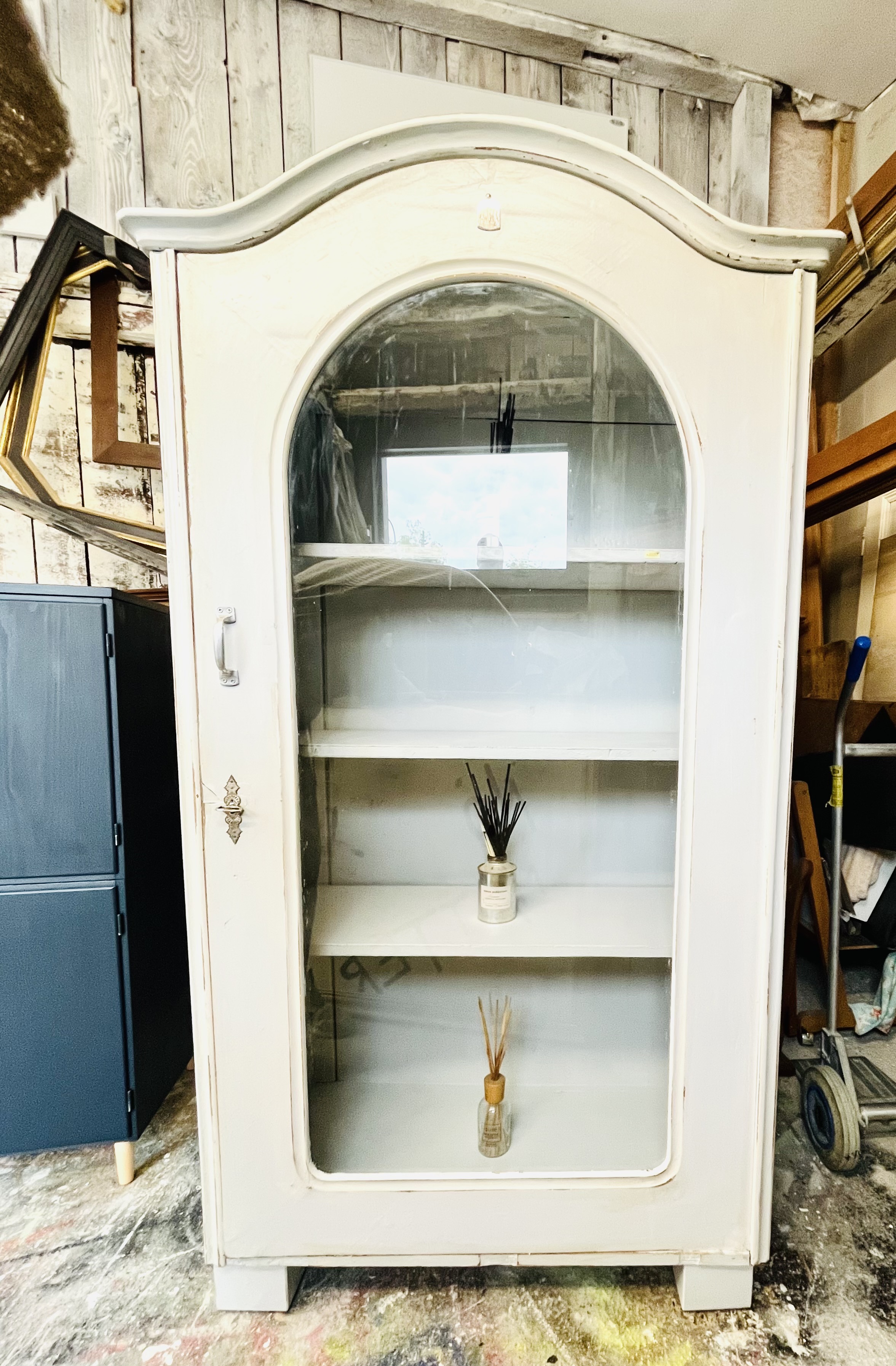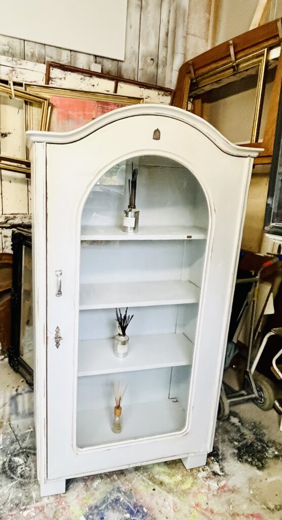 Hellgrauer Vitrinen Schrank im shabby Look